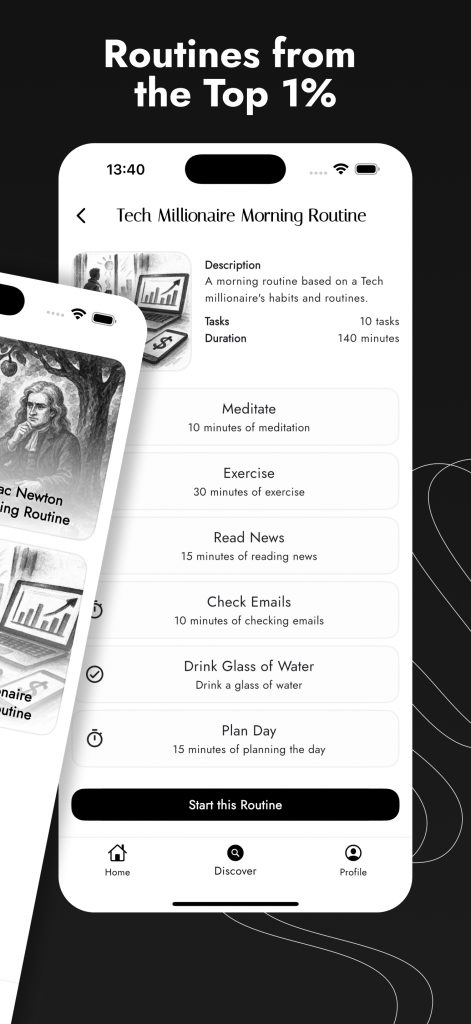 Unlock the secret to high-performance mornings with Millionaire Morning. Whether you’re looking to boost your energy, focus your mind, or reclaim your time, this app lets you explore, customize, and adopt proven morning routines—all with one tap.